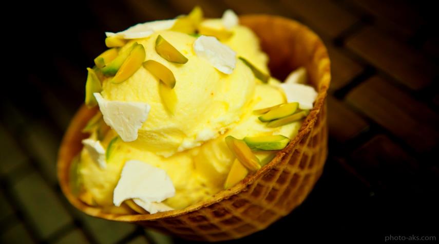 الاطعمة الايرانية - الكوثر: بستني سنتي زعفراني هي مثلجات إيرانية تُصنع من الحليب ومكونات أخرى وتعود طريقة اعدادها الى في عصر الإمبراطورية الفارسية حيث كانت الناس تضع العصير على الثلوج وكان يسمى فاكهة الثلج.