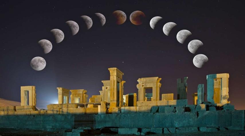 ايران - الكوثر: صور مختارة للخسوف الكلي للقمر من معلم برسبوليس في محافظة شيراز الايرانية