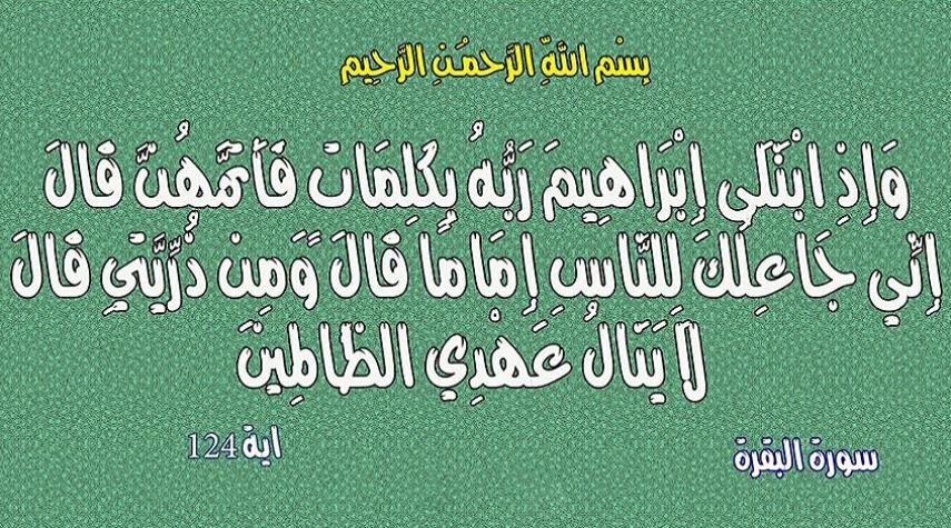 القرآن الكريم-الكوثر: قال الله عزّ وجلّ في محكم كتابه العزيز: ((وَإِذِ ابْتَلَىٰ إِبْرَاهِيمَ رَبُّهُ بِكَلِمَاتٍ فَأَتَمَّهُنَّ ۖ قَالَ إِنِّي جَاعِلُكَ لِلنَّاسِ إِمَامًا ۖ قَالَ وَمِن ذُرِّيَّتِي ۖ قَالَ لَا يَنَالُ عَهْدِي الظَّالِمِينَ)) " سورة البقرة المباركة آية 124 " وقال تعالى: ((وَجَعَلْنَاهُمْ أَئِمَّةً يَهْدُونَ بِأَمْرِنَا وَأَوْحَيْنَا إِلَيْهِمْ فِعْلَ الْخَيْرَاتِ وَإِقَامَ الصَّلَاةِ وَإِيتَاءَ الزَّكَاةِ ۖ وَكَانُوا لَنَا عَابِدِينَ)). "سورة الأنبياء المباركة آية 73 ".