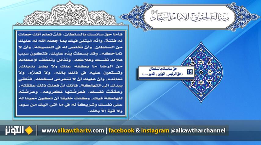 البند الـ 15 من رسالة الحقوق للامام السجاد.. حق سائسك بالسلطان