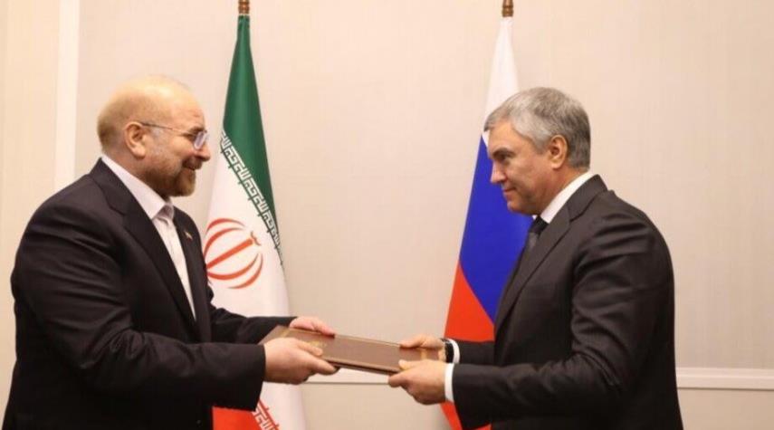 قام رئيس مجلس الشورى الاسلامي في الثامن من فبراير 2021 ، بتسليم رسالة سماحة قائد الثورة الاسلامية الموجهة إلى الرئيس الروسي فلاديمير بوتين الى رئيس مجلس الدوما الروسي ومندوب بوتين الخاص.