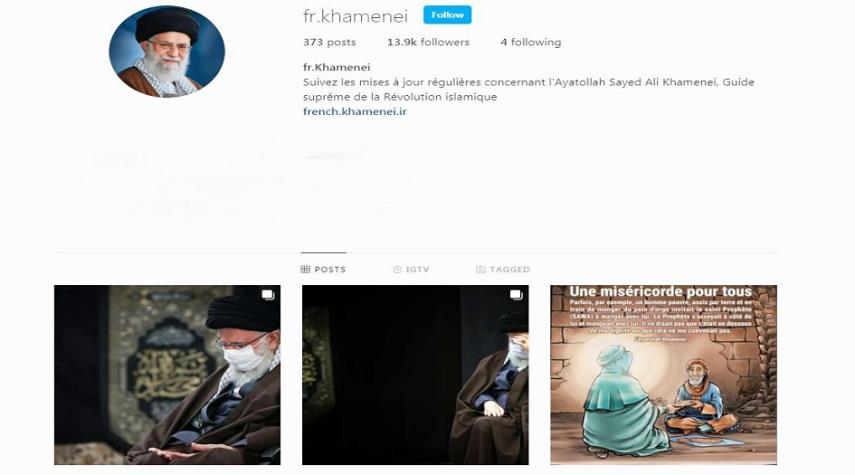 رفع الحجب عن حساب الامام الخامنئي قائد الثورة الاسلامية باللغة الفرنسية على انستغرام