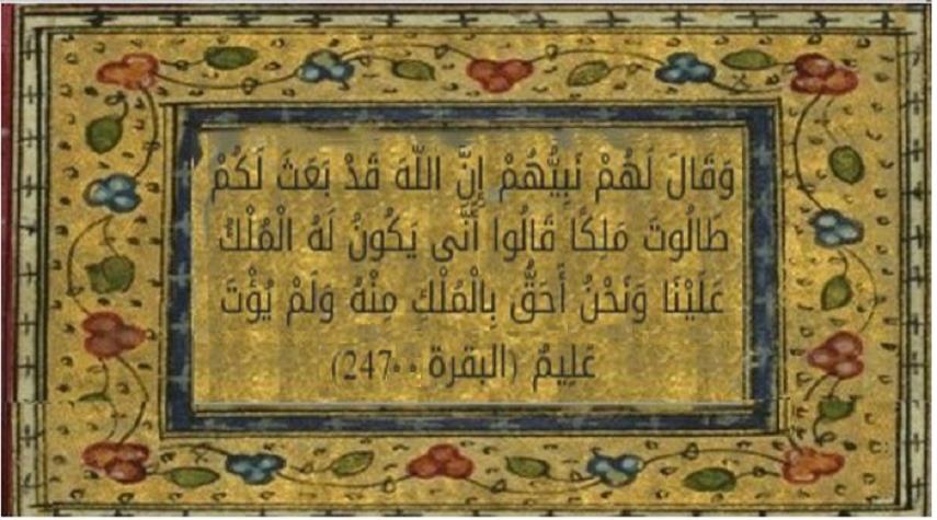 القرآن الكريم-الكوثر: قال الله عزّ وجلّ في محكم كتابه العزيز: (( وَقَالَ لَهُمْ نَبِيُّهُمْ إِنَّ اللَّهَ قَدْ بَعَثَ لَكُمْ طَالُوتَ مَلِكًا ۚ قَالُوا أَنَّىٰ يَكُونُ لَهُ الْمُلْكُ عَلَيْنَا وَنَحْنُ أَحَقُّ بِالْمُلْكِ مِنْهُ وَلَمْ يُؤْتَ سَعَةً مِّنَ الْمَالِ ۚ قَالَ إِنَّ اللَّهَ اصْطَفَاهُ عَلَيْكُمْ وَزَادَهُ بَسْطَةً فِي الْعِلْمِ وَالْجِسْمِ ۖ وَاللَّهُ يُؤْتِي مُلْكَهُ مَن يَشَاءُ ۚ وَاللَّهُ وَاسِعٌ عَلِيمٌ )) (سورة البقرة المباركة: الآية 247).