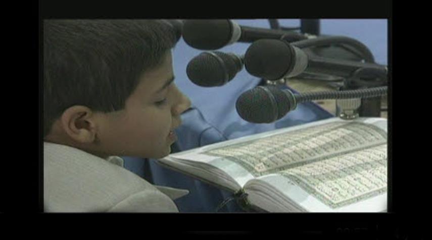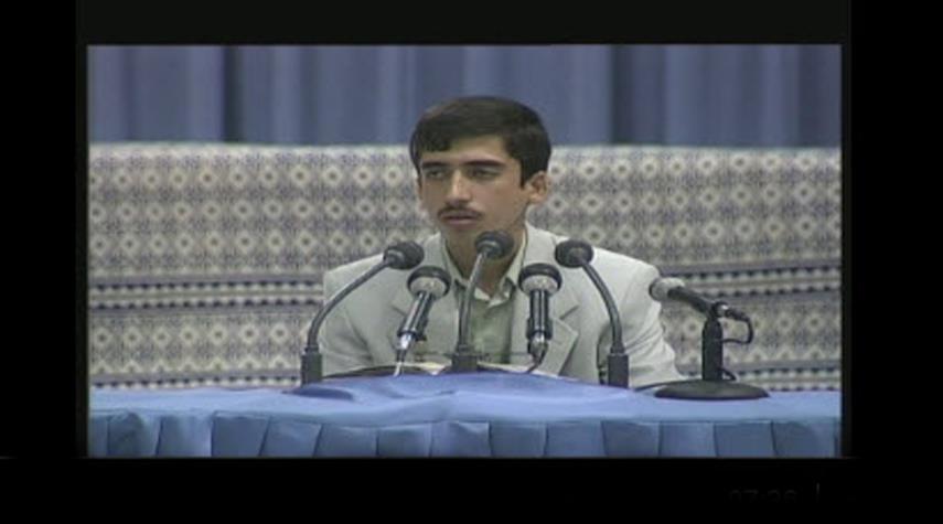 قارئ طفل يتلو آيات بينات من سورة الأحزاب المباركة من الآية 38 إلى الآية 48 بحضور الإمام الخامنئي.