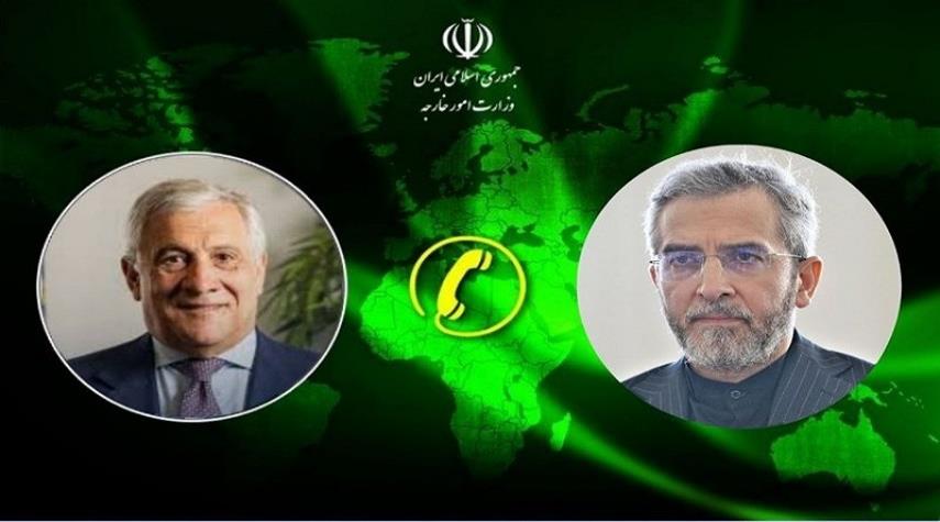 بحث وزير الخارجية الإيطالي أنطونيو تاجاني، في اتصال هاتفي مع المشرف على وزارة الخارجية علي باقري، العلاقات الثنائية والقضايا الإقليمية