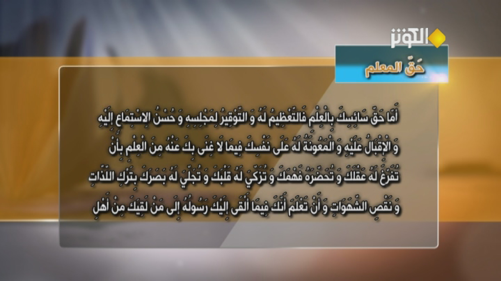 بيان "حق المعلم" من رسالة الحقوق للإمام علي بن الحسين زين العابدين عليه السلام.