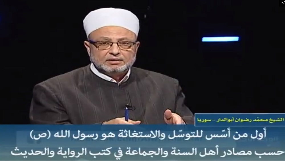 فضيلة الشيخ محمد رضوان أبو الدار من سوريا يؤكد في حلقة من برنامج "الوجه الآخر" أن ابن تيمية يعارض الإمام أحمد بن حنبل في جواز التوسل برسول الله (ص) وتقبيل قبره الشريف ويخالفه في رأيه.
