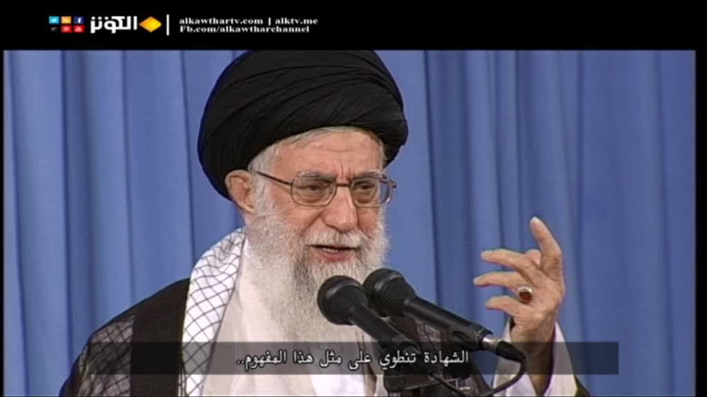 بين قائد الثورة الاسلامية اهمية الشهادة و انها موت التجارة مع الله سبحانه وتعالى وان الله يلطف بعباده بالشهادة.