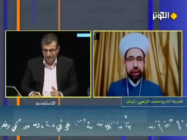 الضيوف : سماحة الشيخ حسن البغدادي عضوالمجلس المركزي في حزب الله، وفضيلة الشيخ غازي حنينة رئيس مجلس الأمناء بتجمع العلماء المسلمين