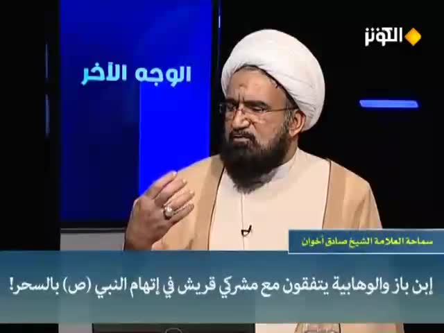 الوجه الآخر _ الكوثر: تحدث الشيخ صادق أخوان عن عقائد الوهابية وما ينسبونه للنبي من السحر والخيال وهم بهذا يتفقون مع مشركي قريش الذين اتهموا رسول الله (صلى الله عليه وآله) بالسحر!