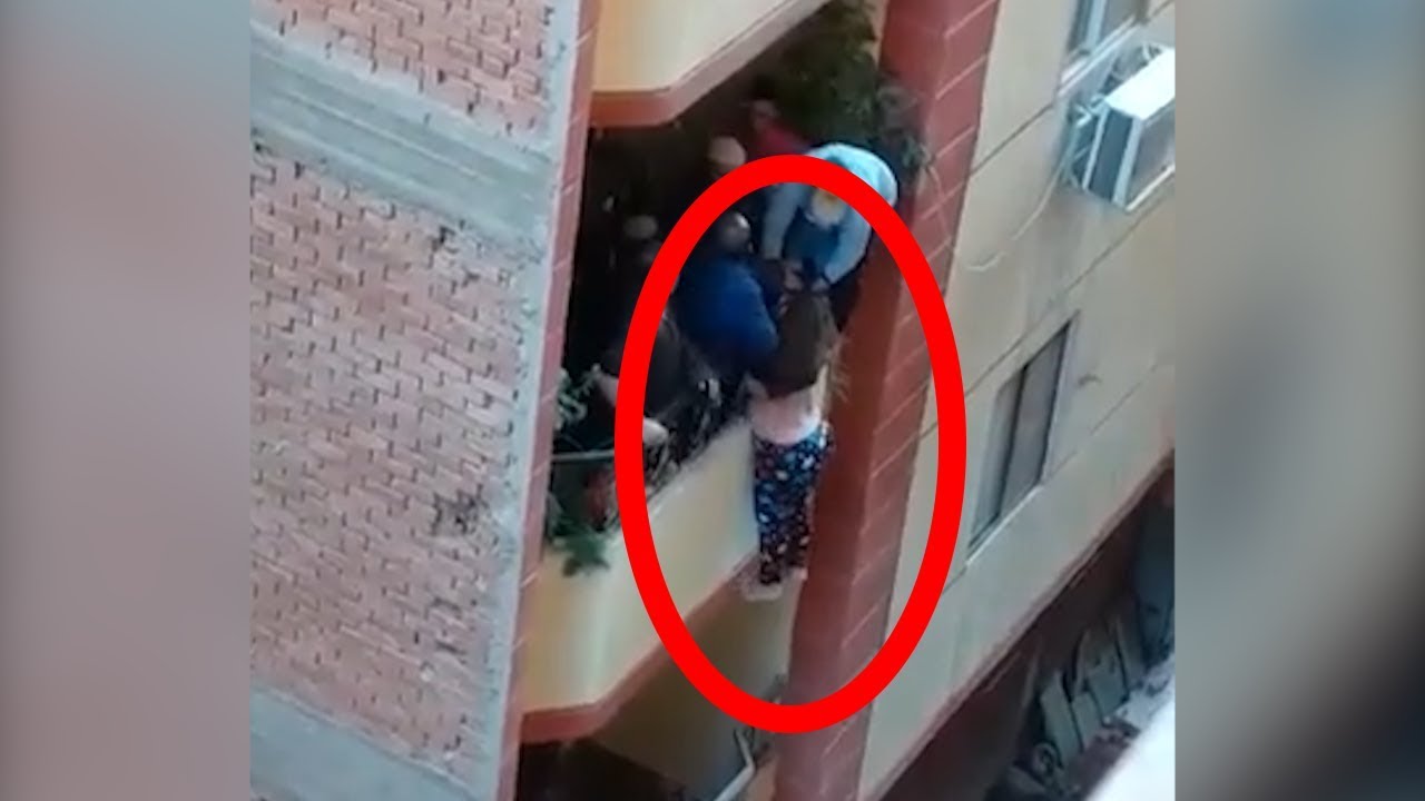 ويظهر الفيديو تدخل الأهالي فى إنقاذ الزوجة من السقوط وإعادة إدخالها إلى الشقة،وذكر أحد رواد الفيس بوك أن سبب إقدام الزوج على إلقاء زوجته هو خلافات مادية.
