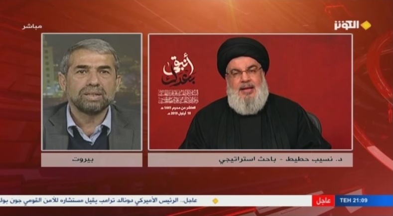 في حلقتنا من برنامج قضية ساخنة اكد ضيفنا من بيروت الباحث الاستراتيجي الدكتور نسيب حطيط بان خطاب الامين العام لحزب الله جاء من منطلق كربلاء وعاشوراء فعلى هذا الاساس اراد السيد نصرالله اعطاء فكرة واضحة على ان محور المقاومة هو امتداد لنهضة الحسين الخالدة لكنه ومع قلة الناصر سيمضي هذا المحور قدما وسيقف امام المشروع الامريكي.