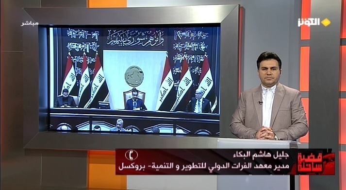 بين ضيفنا من بروكسل السيد جليل هاشم البكاء مدير معهد الفرات الدولي للتطوير والتنمية وفي لقائه مع برنامج قضية ساخنة ضرورة التسريع في تشريح شخصية سياسية بأسرع وقت ممكن لإستلام مهام رئاسة الوزراء العراقية للخروج من الأزمة الراهنة لان البلد يعيش حالة من الفوضى العارمة.