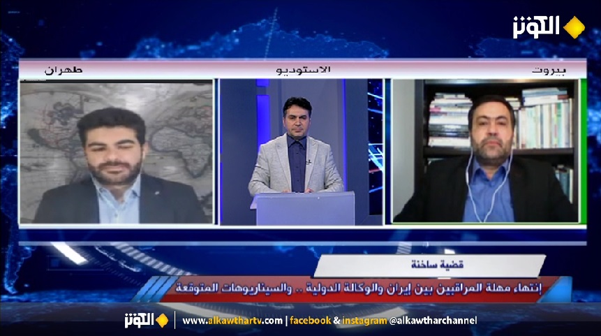 إنتهاء مهلة المراقبين بين ايران والوكالة الدولية .. السيناريوهات المتوقعة، محور الحديث من قضية ساخنة يناقشها البرنامج مع الاستاذ "علي بيضون" استاذ في العلاقات الدولية والعلوم السياسية من بيروت، والاعلامي "حسين امهز" من طهران
