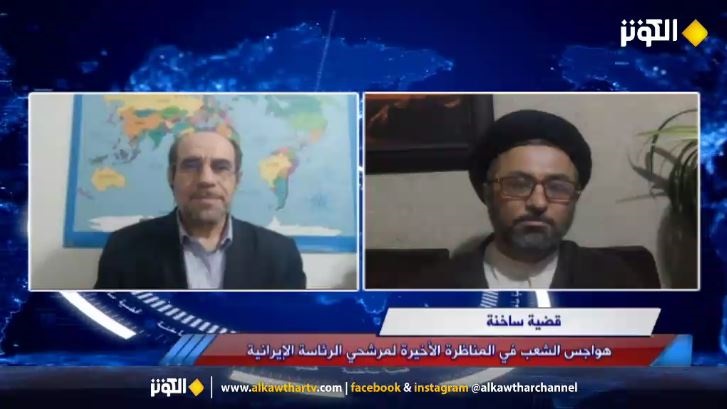 هواجس الشعب في المناظرة الاخيرة لمرشحي الرئاسة الايرانية، محور الحديث من قضية ساخنة يناقشها البرنامج مع الدكتور "احمد مهدي" اكاديمي وباحث سياسي والسيد " فادي السيد" رئيس مركز الامة الواحدة للدراسات الفكرية والاستراتيجية.