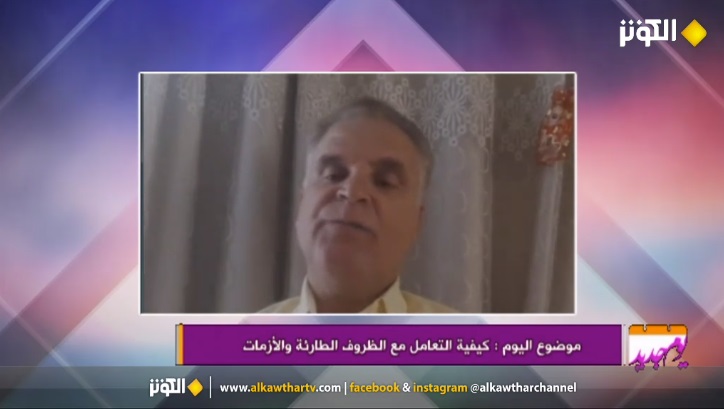 خاص الكوثر: برنامج يوم جديد يتناول بالدراسة أهم الأحداث الاجتماعية والفكرية والثقافية، حيث تطرق البرنامج في هذه الحلقة الى موضوع : " كيفية التعامل مع الظروف الطارئة والأزمات 16-06-2021 " في حوار مع "محمد خير اللبابيدي" استشاري في التنمية البشرية والإرشاد النفسي من دمشق.