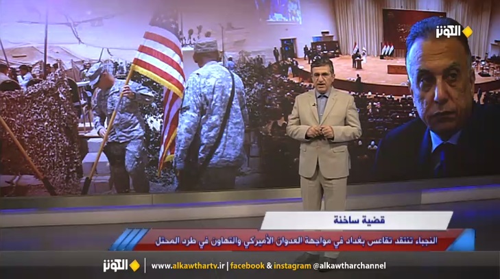 قرار البرلمان العراقي الذي صدر قبل سنة واربعة اشهر بالتحديد في 5 يناير الى اليوم لم ينفذ من قبل الحكومة، حكومة تصريف الاعمال للاسف الشديد وبدل ان تعمل على تنفيذ هذا القرار البرلماني الملزم تفاوض الامريكان على قضايا اخرى الامر الاخر هناك نقد موجه الى البرلمان نفسه لماذا الى الآن الكتل التي صوتت على اخراج القوات الامريكية بالاغلبية في البرلمان لم تتابع الموضوع الى الان ، الشمري المتحدث باسم النجباء انتقد رئيس الوزراء مصطفى الكاظمي وقال ان موقفه غير واضح من الاعتداءات الامريكية ومن قضية اخراج القوات الامريكية من العراق.