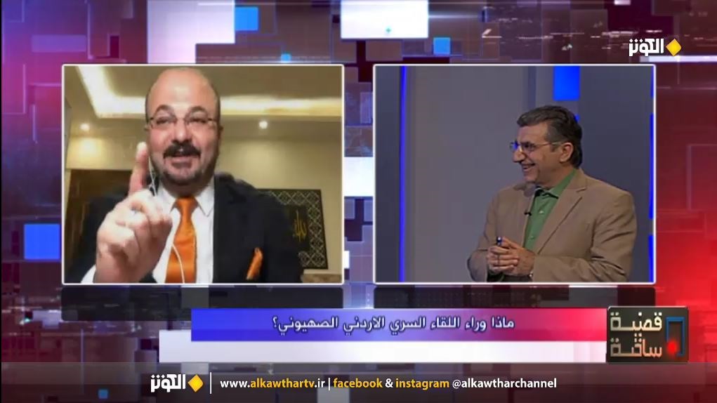 ماذا وراء اللقاء السري الاردني الصهيوني ، محور الحديث من قضية ساخنة يناقشها البرنامج مع الاستاذ " محمد أحمد الروسان " عضو المكتب السياسي للحركة الشعبية الاردنية من عمان و الاستاذ " حسن حجازي " المختص بالشأن الاسرائيلي من بيروت.
