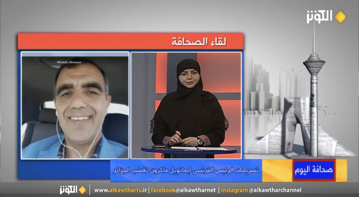 لقاء الصحافة حمل عنوان: تصريحات الرئيس الفرنسي ايمانويل ماكرون تغضب الجزائر واستضفنا عبر الهاتف من  الجزائر الإعلامي والمحلل السياسي عمار بن جدة.