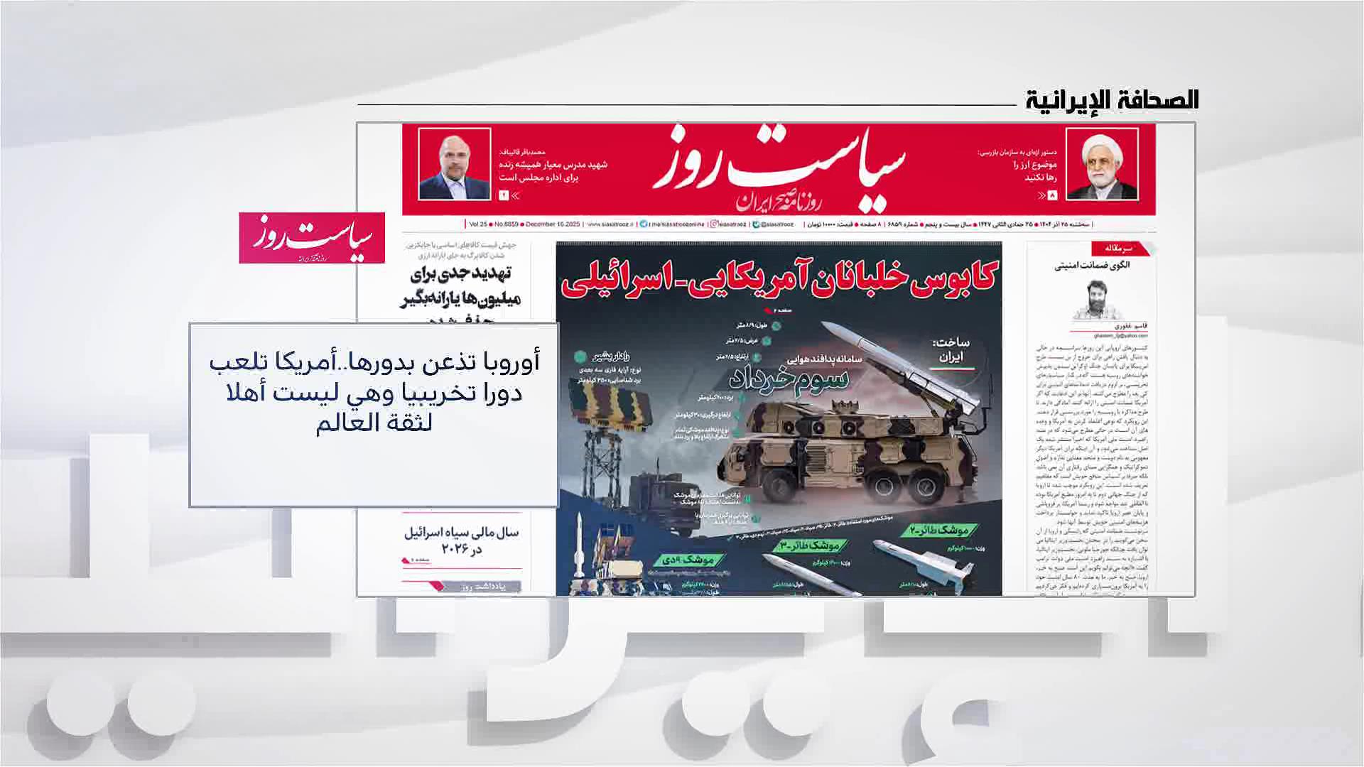 • الصحافة الإيرانية.. أوروبا تذعن بدورها وامربكا تلعب دورا تخريبيا وهي ليست اهلا لثقة العالم | 2025-12-16