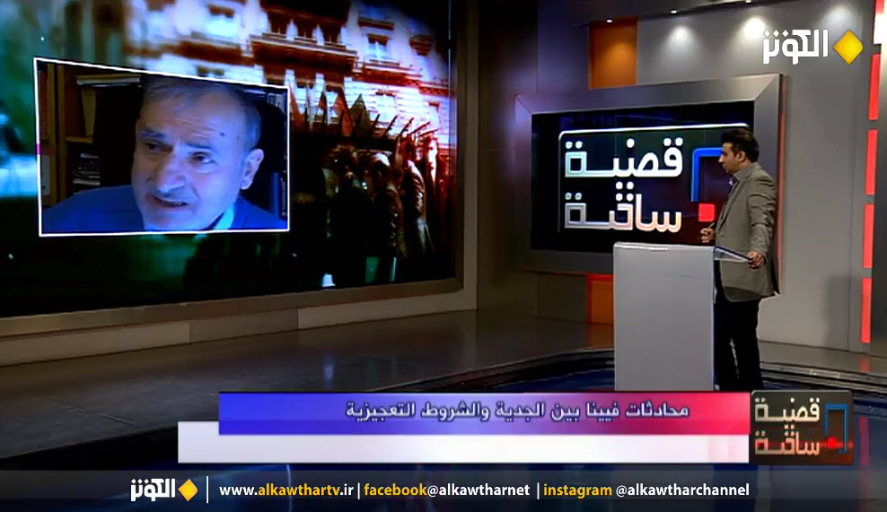 تحدثنا في هذه الحلقة من برنامج قضية ساخنة، عن محادثات فيينا ، مع الاستاذ سعيد دودين، مدير مؤسسة عالم واحد للبحث والإعلام ،حيث اجاب علي سؤال: كشفت مصادر عسكرية امريكية ان واشنطن رفضت سيناريوهات لوضع خطة عسكرية امريكية جدية لضرب اهداف عسكرية ونووية داخل ايران السؤال هل برايك ان ذلك يوحي بوجود خلاف حقيقي بين ادارة بايدن والكيان الاسرائيلي بخصوص رفض السيناريوهات العسكرية التي يقترحها الصهاينة؟