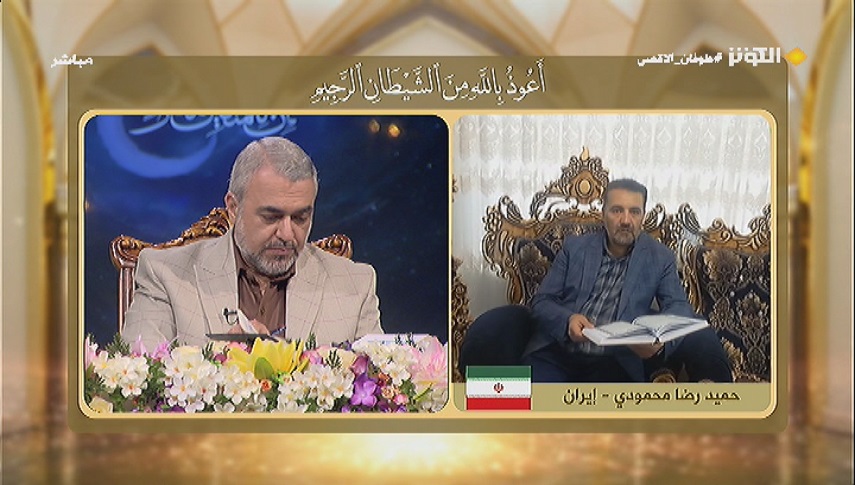 تلاوة قرآنية للمتسابق المشارك " حميد رضا محمودي " من إيران حسب القرعة في الليلة السادسة عشرة من مسابقة "إن للمتقين مفازا" من آية 42 الى 45 من سورة إبراهيم المباركة.