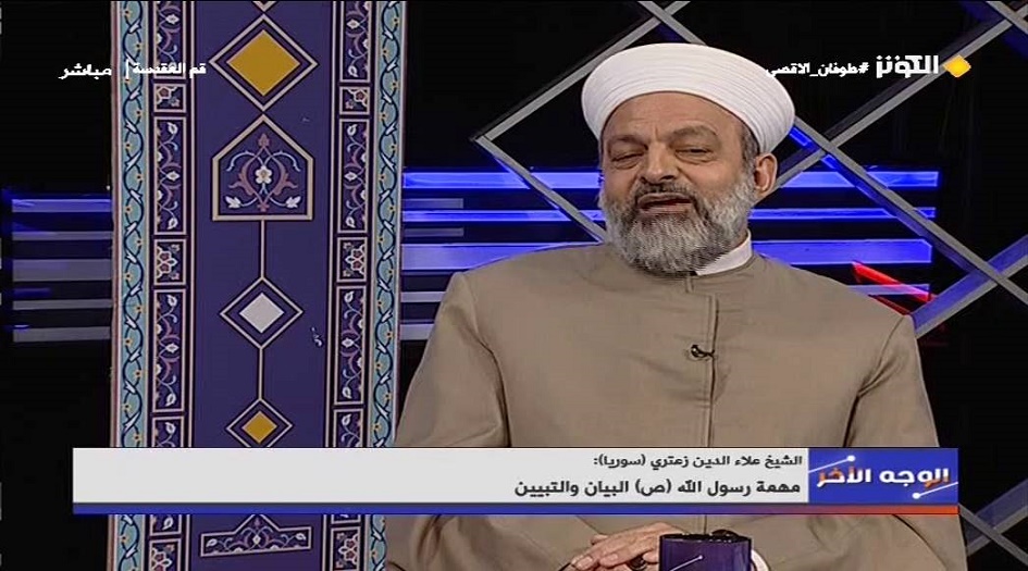 قال الشيخ الدكتورعلاء الدين زعتري : رسول الله هو المبين حسب قوله تعالى (وَأَنْزَلْنَا إِلَيْكَ الذِّكْرَ لِتُبَيِّنَ لِلنَّاسِ مَا نُزِّلَ إِلَيْهِمْ وَلَعَلَّهُمْ يَتَفَكَّرُونَ) إذاً مهمة رسول الله صلوات الله عليه وعلى آله البيان والتبيين والإيضاح والشرح عما جاء في القرآن الكريم .