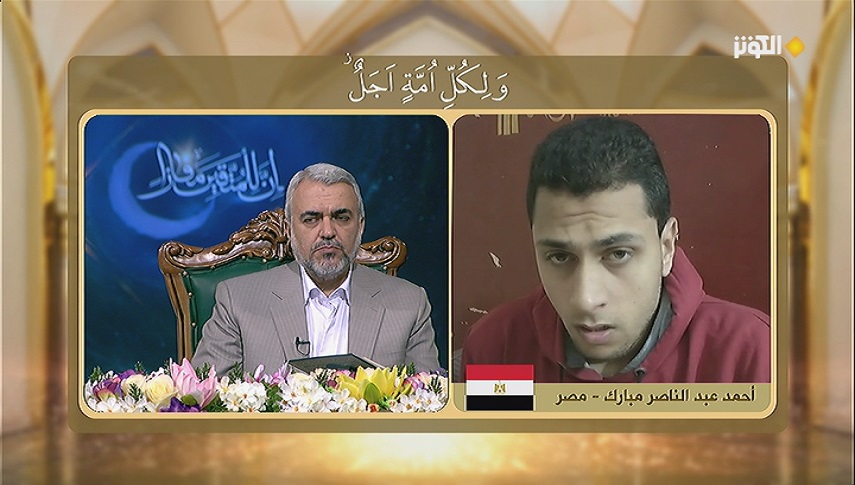 تلاوة قرآنية للمتسابق المشارك " أحمد عبدالناصر مبارك " من مصر حسب القرعة في الليلة الثامنة عشرة من مسابقة "إن للمتقين مفازا" من آية 34 الى 37 من سورة الأعراف المباركة.