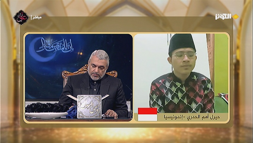 تلاوة قرآنية للمتسابق المشارك " حيرل أمم الحدري " من إندونيسيا حسب القرعة في الليلة الثانية والعشرين من مسابقة "إن للمتقين مفازا" من آية 25 الى 28 من سورة الروم المباركة.