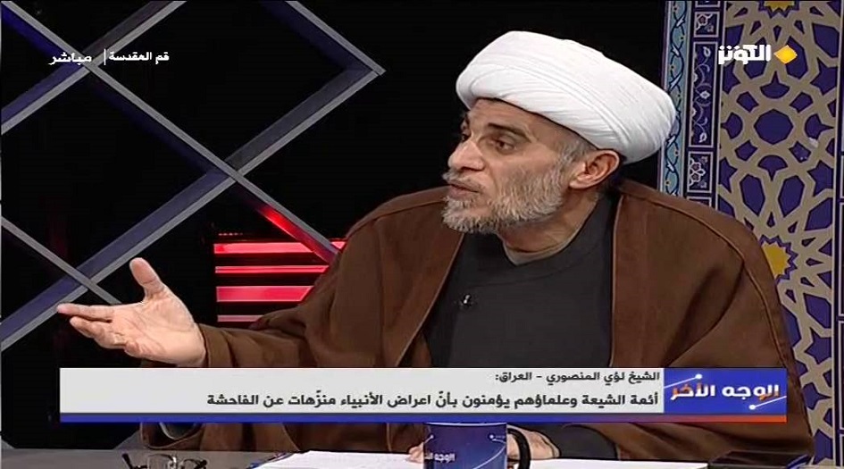 قال الدكتورالشيخ لؤي المنصوري: إن ائمة وعلماءالشيعة يؤمنون بإن أعراض الانبياء جميعاً منزهات عن الفاحشة ،وكل علماء الشيعة يؤكدون أنه لا يصح ولايجوزبإي حال من الأحوال التحدث عن إي زوجة من زوجات النبي بإي كلام نائب .