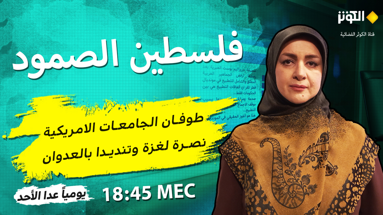 فلسطين الصمود... تتابعونه مع الدكتورة زينب جابر السبت، السابعة والربع مساءً بتوقيت طهران على قناة الكوثر الفضائية.