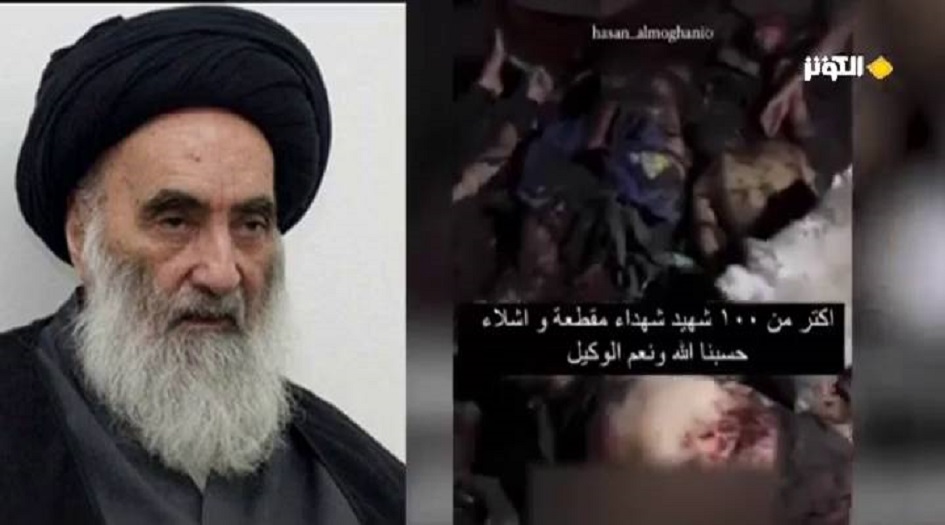 المرجع الاعلى السيد علي السيستاني دان ارتكب العدو مجزرة مدرسة التابعين في غزة وقال في بيان له : مرة اخرى ارتكب جيش الاحتلال الاسرائيلي مجزرة كبرى في قطاع غزة الابية باستهداف من تأويهم مدرسة التابعين من النازحين والمشردين، ادت الى سقوط اعداد كبيرة من المدنيين الابرياء بين شهيد وجريح في جريمة مروعة تضاف الى سلسلة جرائمه المتواصلة منذ ما يزيد عن عشرة اشهـر,.