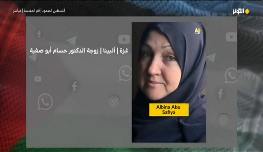 وأضافت البينا: كان بامكاننا ان نرجع الى كازاخستان ولكن الدكتور حسام أبو صفية قال: أنا أريد أن أبقى في غزة  واخدم اهالي غزة واريد ان أعالج المرضى والمصابين، نحن لا نعرف مصير الدكتور وهل هو حي أم لا وأين هو بالتحديد؟