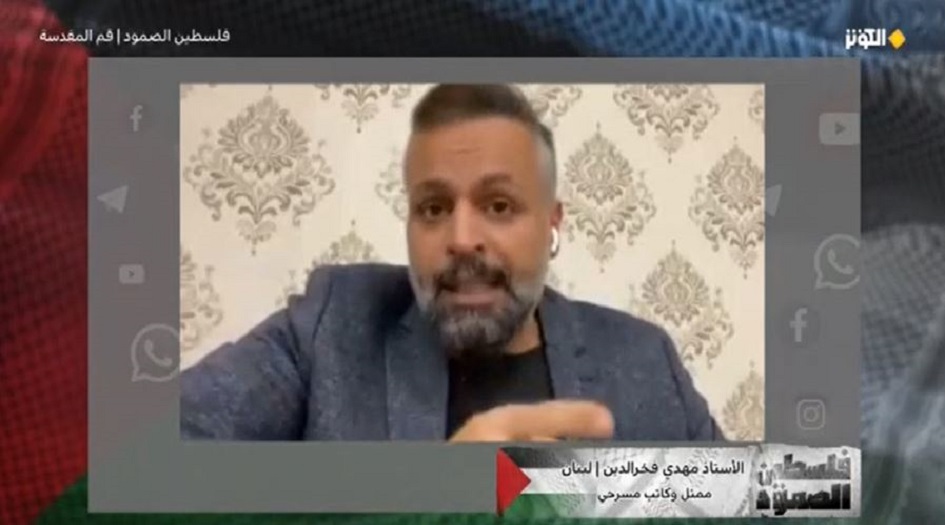تحدث الكاتب والممثل مهدي فخر الدين من لبنان ضمن مشاركته في حلقة الامس من برنامج فلسطين الصمود عن دور الإعلام في جبهات المعركة ، أهمية جهاد التبين ومقاومة الإعلام الكاذب .