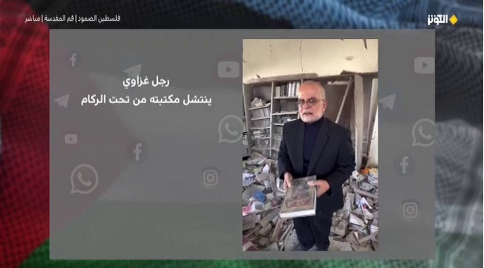 رجل غزاوي ينتشل مكتبته من تحت الركام | فلسطين الصمود