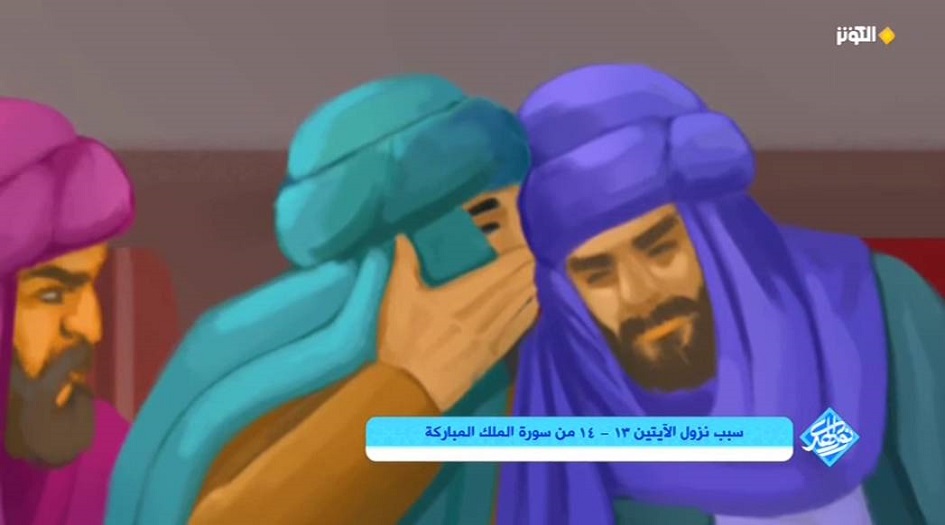 جاء في سبب نزول الآية 13 و14 من سورة الملك المباركة (وَأَسِرُّواْ قَوْلَكُمْ أَوِ ٱجْهَرُواْ بِهِ إِنَّهُ عَلِيمٌ بِذَاتِ ٱلصُّدُورِ ﴿١٣﴾ أَلَا يَعْلَمُ مَنْ خَلَقَ وَهُوَ ٱللَّطِيفُ ٱلْخَبِيرُ ﴿١٤﴾ قول ابن عباس أن جماعة من الكفار أو المنافقين كانوا يذكرون الرسول صلى الله عليه وآله وسلم بالسوء دون علمه وكان جبرائيل عليه السلام يخبر الرسول صلى الله عليه وآله وسلم بذلك وكانوا بعضهم يقول للآخر أسُّروا قولكم ، فنزلت الآية أعلاه موضحةً أن جهرهم أوأخفاههم لأقوالهم هو مما يعلمه الله تعالى وتأتي الأية اللاحقة دليلاً وتأكيداً عما ورد في الاية السابقة .