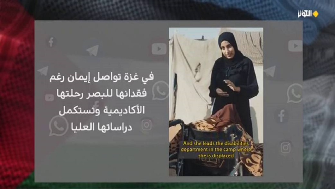 في غزة.. قالت الفتاة الفلسطينية إيمان: لم أسمح لخيبة أمل أن تقيّد أحلامي وطموحاتي، وأحاول دائمًا تطوير نفسي أكثر وأكثر، رغم التعب وفقدان كل شيء كان لدي. أكملت دراستي للماجستير عبر التعليم الإلكتروني.