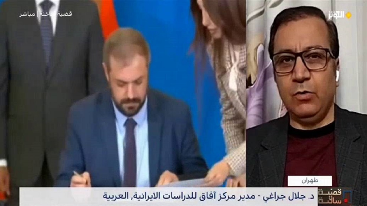 وتابع: اذا العلاقات كانت وما زالت موجودة بين ايران بين ايران ودولة ارمينيا ولكن هناك مشكله التي اعتلت برأسها اخيرا هي التدخل الامريكي في المنطقة، ايران يرتفع منسوب قلقها من تواجد الولايات المتحدة في المنطقة، لان السياسة والمقاربة السياسية الايرانية بشكل عام و تنطوي على تقليص تواجد الولايات المتحدة والقوات الامريكيه في المنطقه سواء كانت في منطقة الخليج الفارسي او في منطقه القوقاز او ما الى ذلك من المناطق المحيطة بايران والدول الاقليمية.