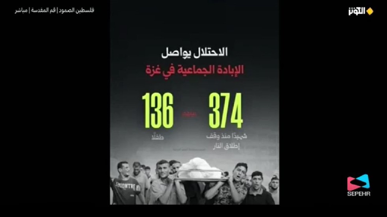 • "هذا السبت، في برنامج فلسطين الصمود، نفتح ملفات ما بعد الهدنة: مأساة إنسانية ترويها اليونيسف.. 40 ألف إنسان فقدوا قدرتهم على الحياة الطبيعية.. وآلاف الأطفال الأيتام يكبرون على الفقد.