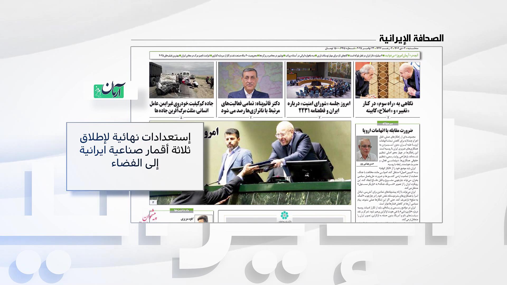 الصحافة الإيرانية.. استعدادات نهائية لإطلاق ثلاثة أقمار صناعية إيرانية الى الفضاء | 2025-12-23