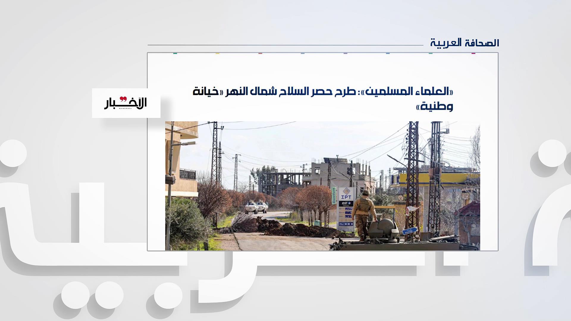 الصحافة العربية.. العلماء المسلمون: طرح حصر السلاح شمال النهر "خيانة وطنية"| 2025-12-24
