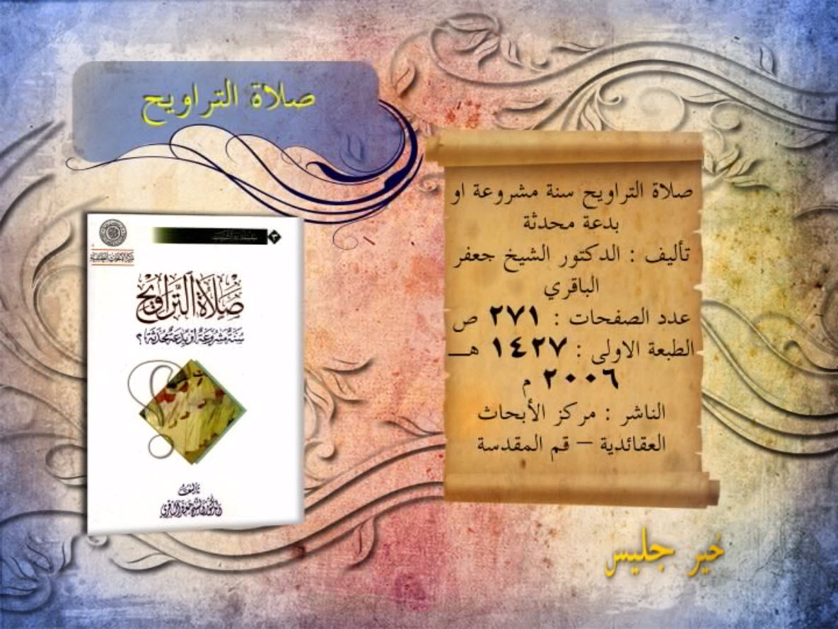 كتاب " صلاة التراويح" تأليف: الدكتور الشيخ جعفر الباقري