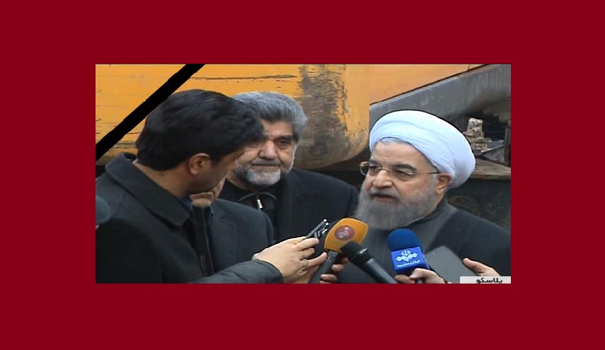 بالفيديو.. الرئيس روحاني يتفقد مكان حادث انهيار مجمع بلاسكو بطهران