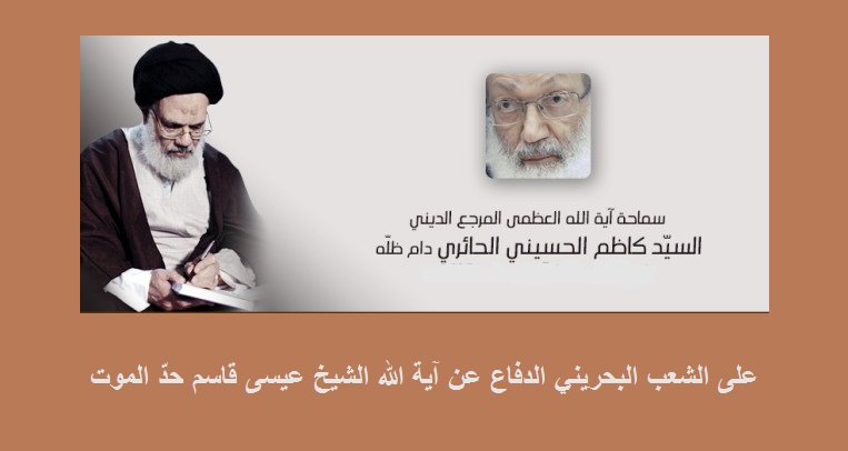 قال المرجع الديني السيد كاظم الحسيني الحائري خلال لقائه كبار علماء البحرين في الحوزة العلمية بقم المقدسة، انه يجب على الشعب البحريني الدفاع عن اية الله الشيخ عيسى قاسم حدّ الموت