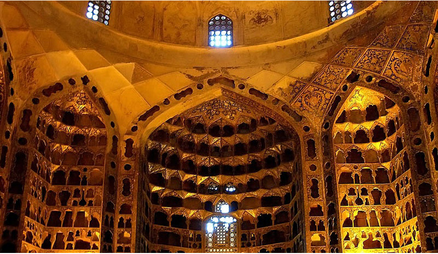 • ولد الشيخ صفي الدين الأردبيلي في أردبيل عام 1252 م وهو رأس الأسرة الصفوية التي حكمت إيران فيما بعد .وكان من أهل السنة والجماعة على المذهب الشافعي وأسس طريقة صوفية جذبت عدد كبير من الاتباع والمريدين توفي عام 1334م ودفن في مسقط رأسه أردبيل .بني ضريح الشيخ الأردبيلي لأول مرة بيد أبنه صدر الدين موسى بعد وفاة الشيخ 1334م. وتم تطوير البناء بين بداية القرن السادس عشر ونهاية القرن الثامن عشر .والضريح عبارة عن برج طويل دائري الشكل تعلوه قبة مزينة بالكاشاني الأزرق ,يبلغ إرتفاع البرج 17م . يضم المجمع أقسام عديدة إضافة للضريح تشمل:مكتبة,مدرسة,مسجد,حوض ماء, مطبخ مستشفى,مخبز وبعض المكاتب .يقع الضريح وقاعة المناسبات الدينية في الركن الأيمن للمسجد وهناك باحة داخلية وسط أبنية المجمع (بطول 31م وعرض 16م) وتمتد أمام المجمع حديقة طويلة .