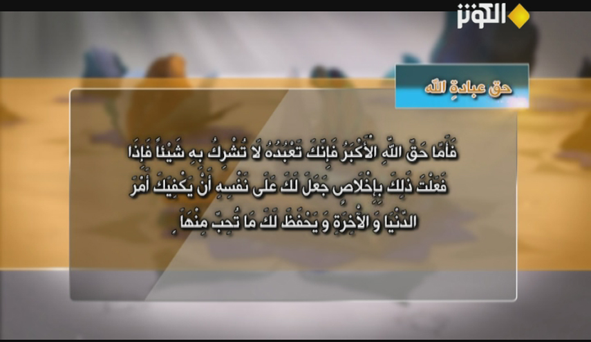 بيان "حق عبادة الله عز وجل" من رسالة الحقوق للإمام علي بن الحسين زين العابدين عليه السلام.