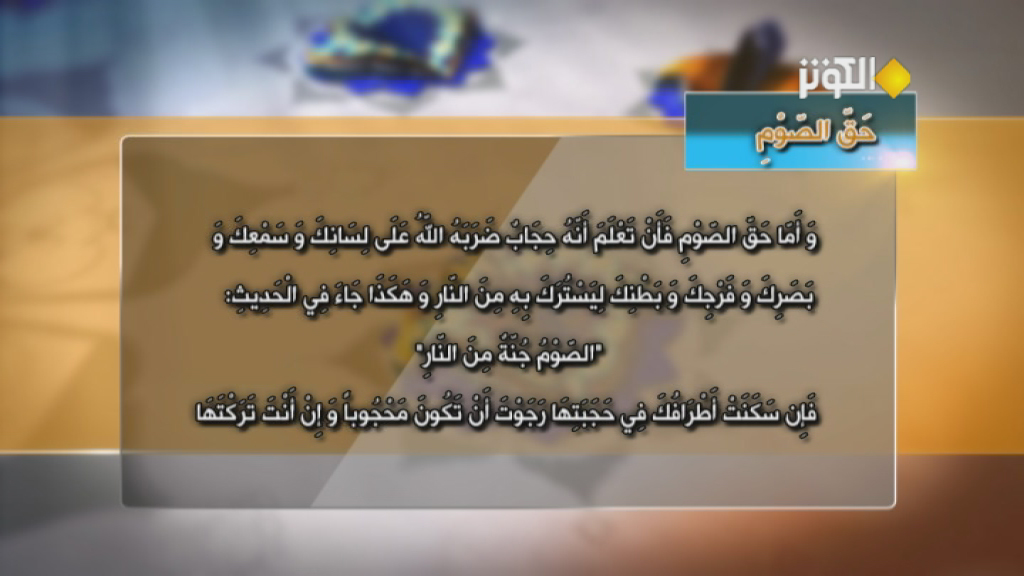 بيان "حق اصوم " من رسالة الحقوق للإمام علي بن الحسين زين العابدين عليه السلام