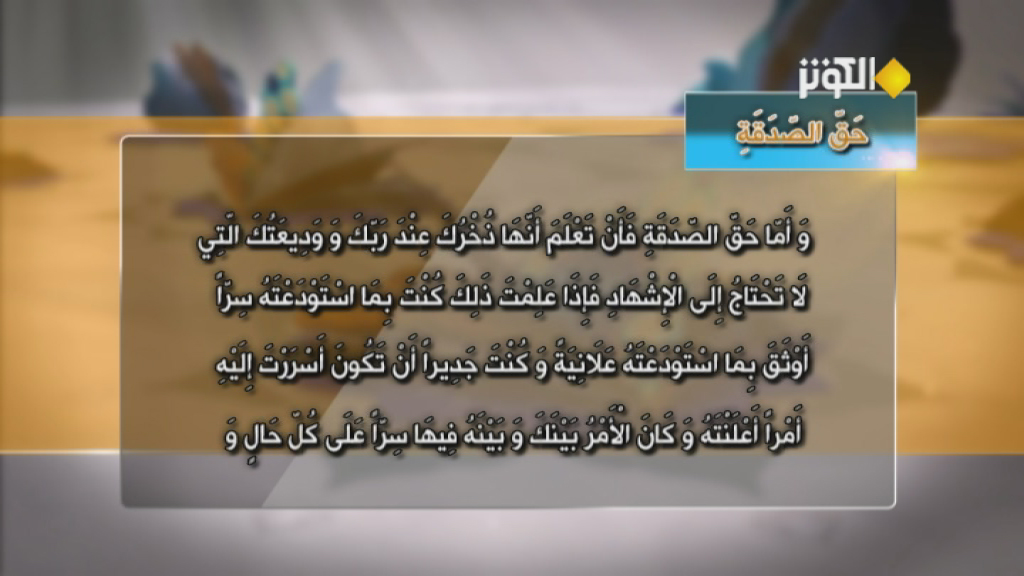 بيان "حق الصدقة " من رسالة الحقوق للإمام علي بن الحسين زين العابدين عليه السلام