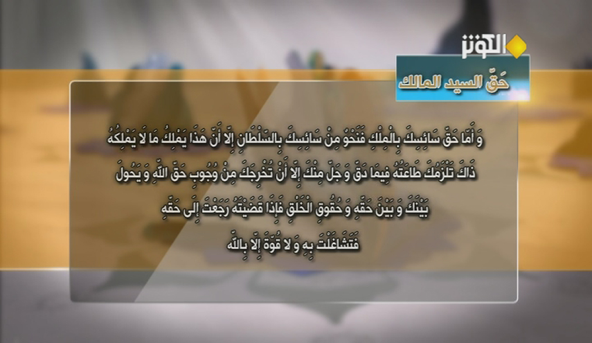 بيان "حق السيد المالك" من رسالة الحقوق للإمام علي بن الحسين زين العابدين عليه السلام.