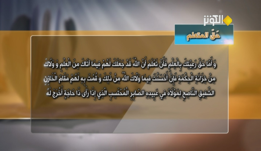 بيان "حق المتعلم " من رسالة الحقوق للإمام علي بن الحسين زين العابدين عليه السلام.